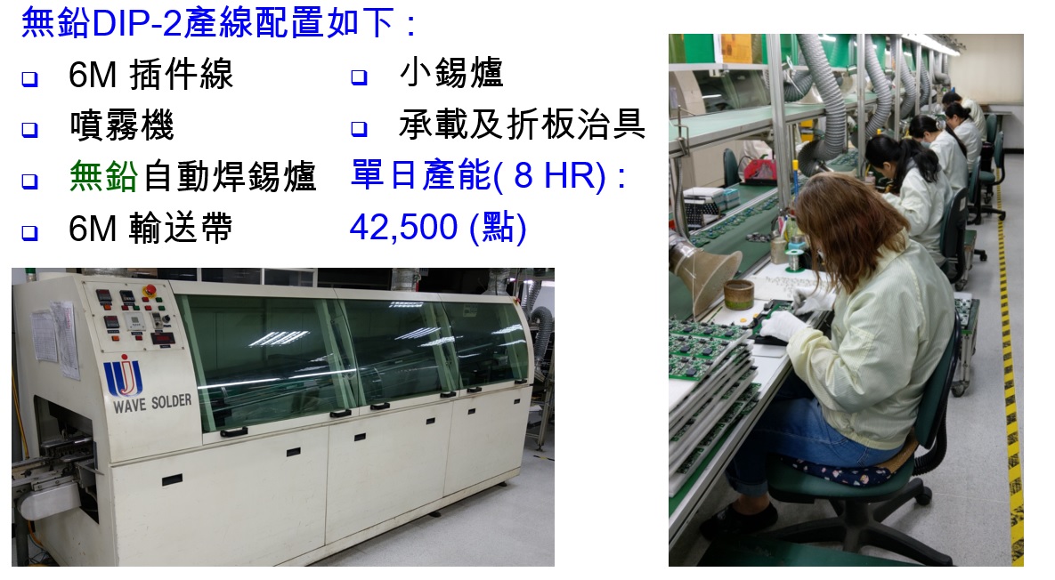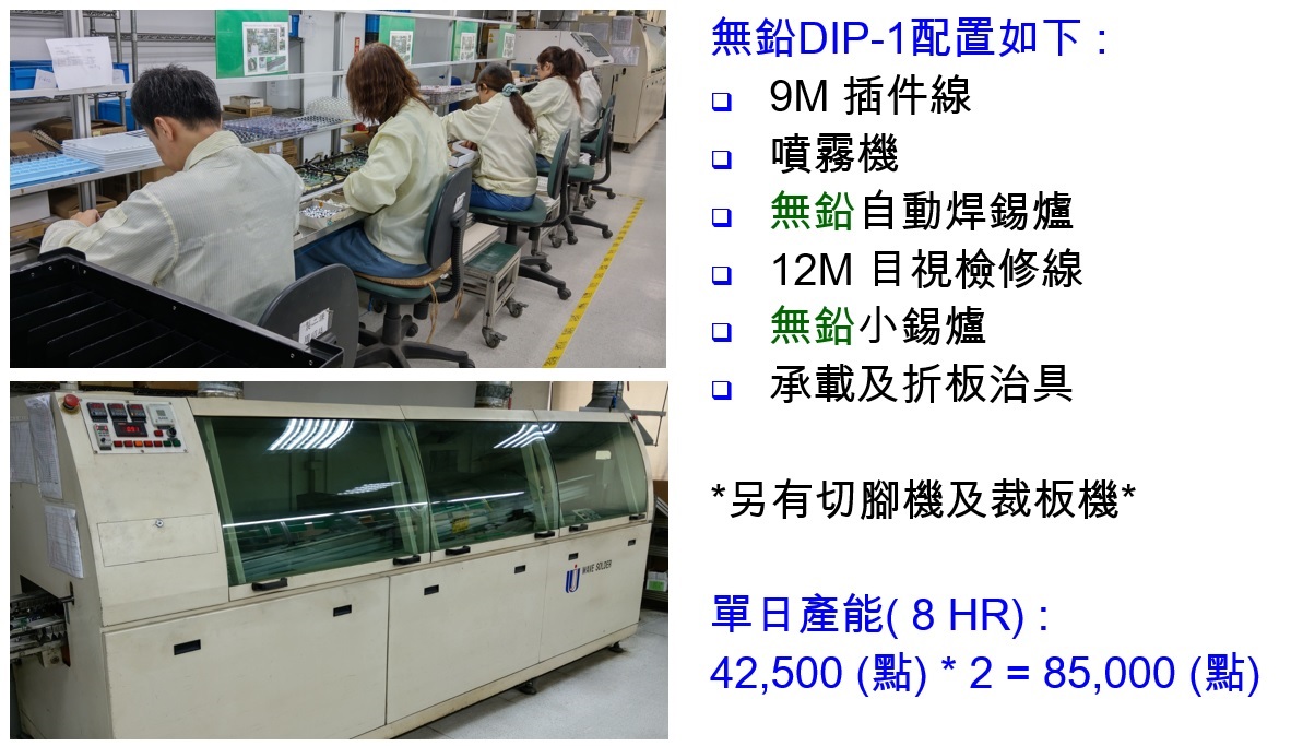 SMT生產線 ◎ 無鉛DIP生產線 測試線 組包裝線 製程能力與經驗